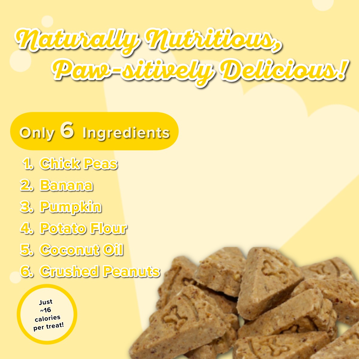 Chick Pea Flour, Banana, Pumpkin, Potato Flour, Coconut, Coconut Oil and Ground Peanuts.