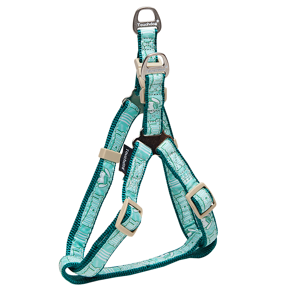 The Touchdog Tough-Stitched Durable Embroidered Harness and Leash Combination features Dual-reinforced stitching for durability and a designer printed pattern with an accented Stainless Steel leash connector located on the Harness.