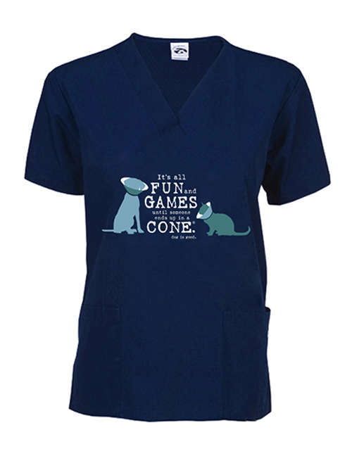Scrub Top: Fun and Games (cat and dog - navy)