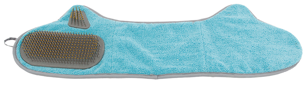 The Pet Life® 'Bryer' 2-in-1 Microfiber Grooming Towel and Brush features a Pin Brush that's stitched onto a Microfiber Towel providing the perfect solution for those looking to save time and brush their hair immediately after bathing or drying. The Pin Brush features Soft and Flexible bristles that are easier on the hair and help remove Knots and Tangles while smoothening their Top and Undercoat more effectively and the perfect length for all Sized Cat and Dog Breeds and Hair Types.