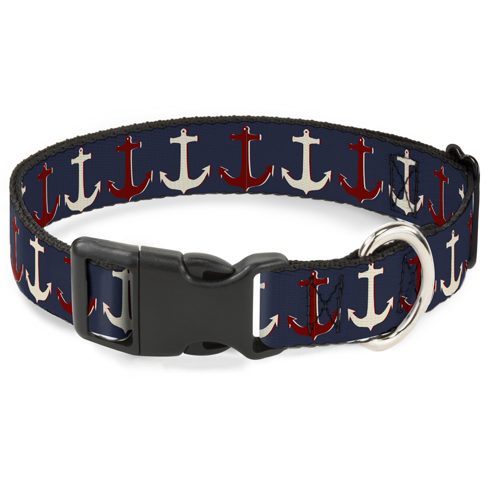 Plastic Clip Collar - Anchor3 CLOSE-UP Navy/Red/Cream