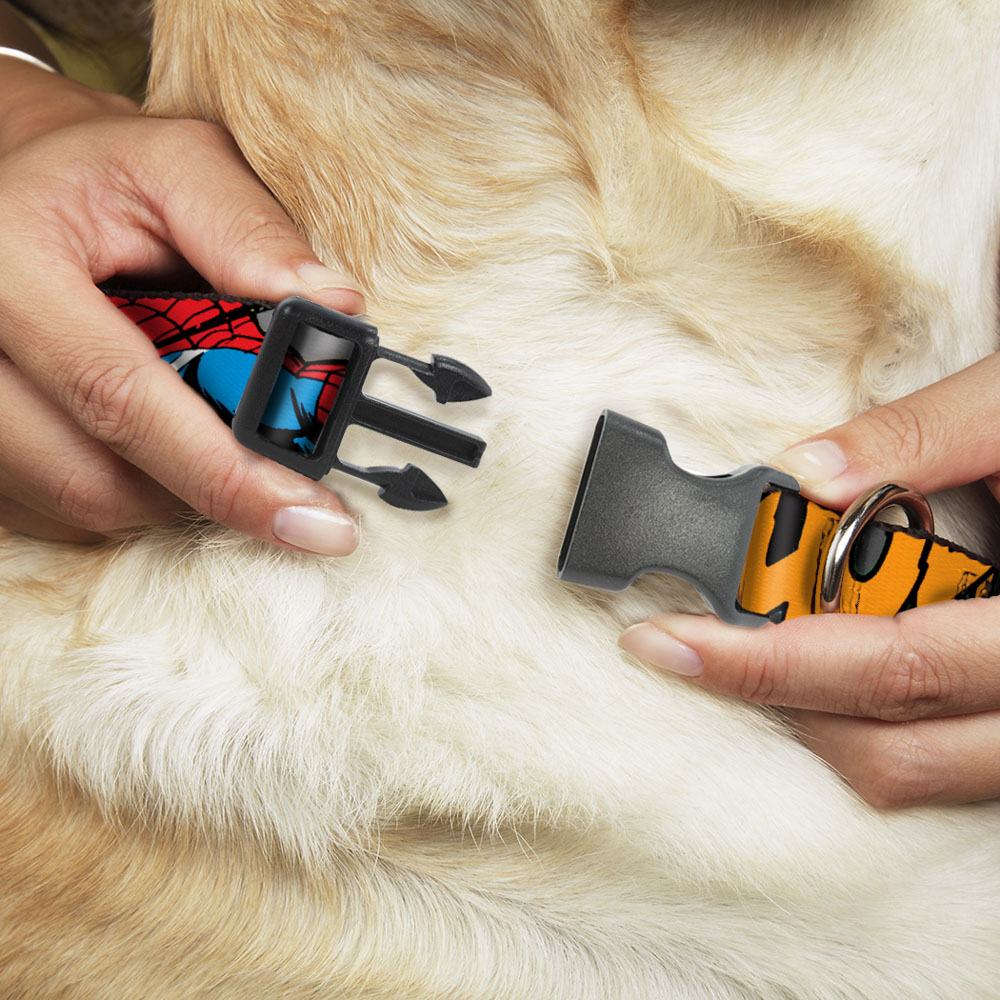 Vibrant and bold, this beautiful, polyester dog collar is made to show off your dog's unique style through all the seasons. With an overengineered plastic buckle and strong D-ring, this durable collar can hold up to whatever your dog can dish out. This product is officially licensed by Marvel Comics.