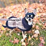 Check out our Classic brown & white plaid pattern on our Brown & White Plaid Designer Coat with thick, warm and soft fleece fur collar and lining. This coat features touch fastener neck and chest closures. It includes a matching leash and a D-ring for easy leash attachment. Made with high-quality cotton/polyblend outer. We've continued the quality with double box stitch reinforced D-ring attachments.