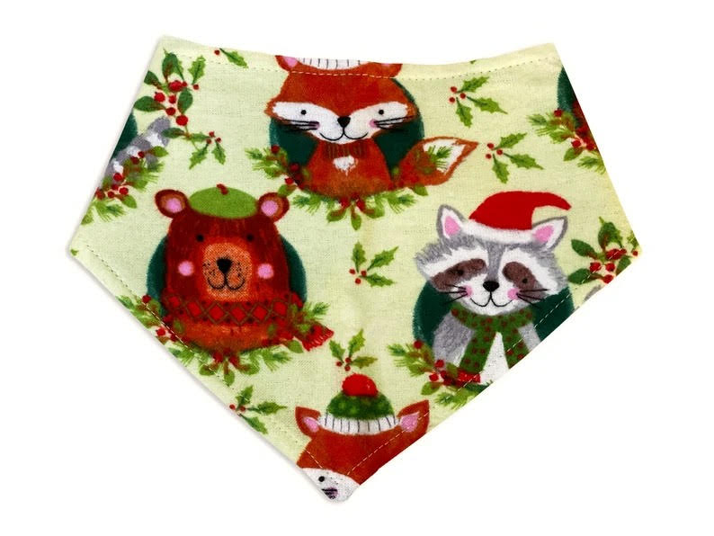 Fun Christmas Critter Pattern. Eco-friendly Snapped Bandana. High Quality. Made in Los Angeles.