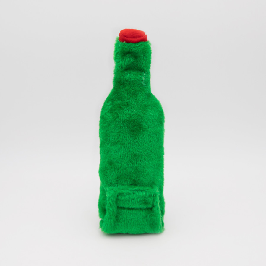 The ZippyPaws Happy Hour Crusherz Lager is a crunchy water bottle dog toy with a plush, stuffing-free cover. This toy includes a free replaceable water bottle and a reusable squeaky bottle cap.