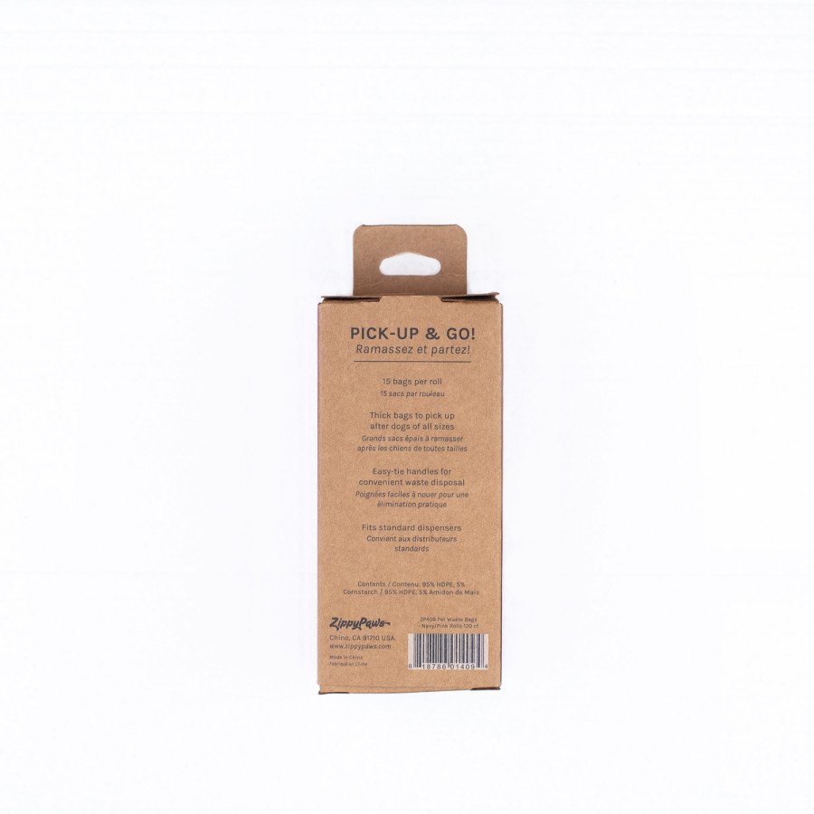 ZippyPaws Pick-Up Bags include handles for easy waste management. Comes in a bag of 8 rolls (15 bags per roll) - 120 bags (8 rolls of 15 bags) - Handles...