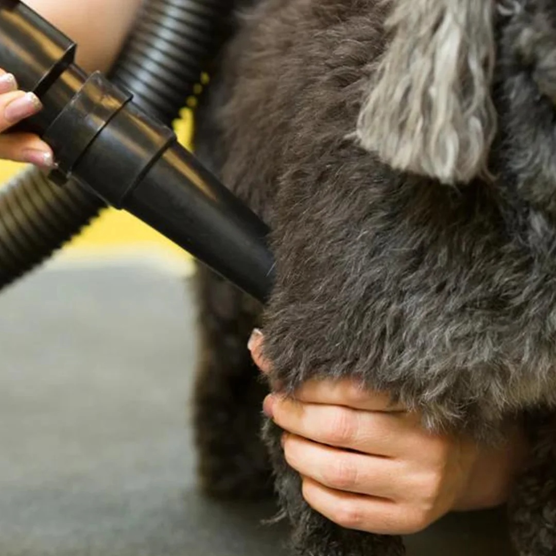 Metrovac Air Force Blaster dog dryer, perfect for drying the dog's coat quickly and efficiently. The design is lightweight and portable, making it convenient to carry anywhere we need it.
