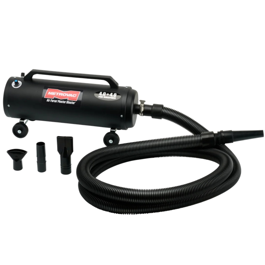 Air Force Master Blaster Variable dog dryer, has dual variable airspeed control which is perfect for drying the dog's coat easily and efficiently.