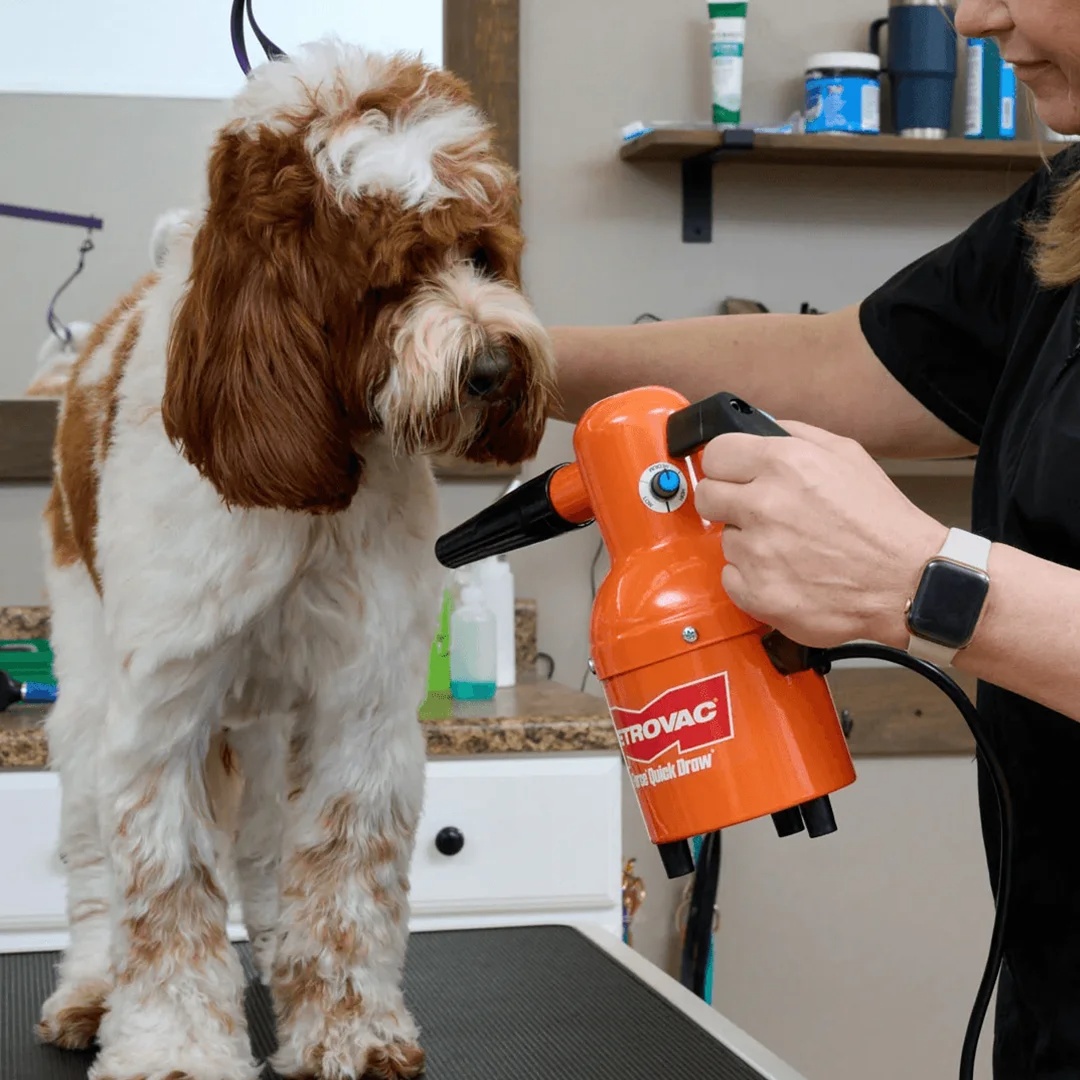 Metrovac Quick Draw Compact Dog Dryer with variable speed, perfect for drying the dog's coat easily and efficiently.