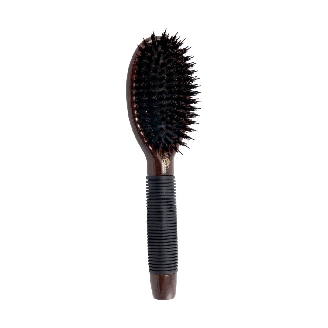 Kenchii Small Boar Nylon Bristle Brush helps to reduce flyaways, stimulates the skin, and enhances natural shine with every stroke.
