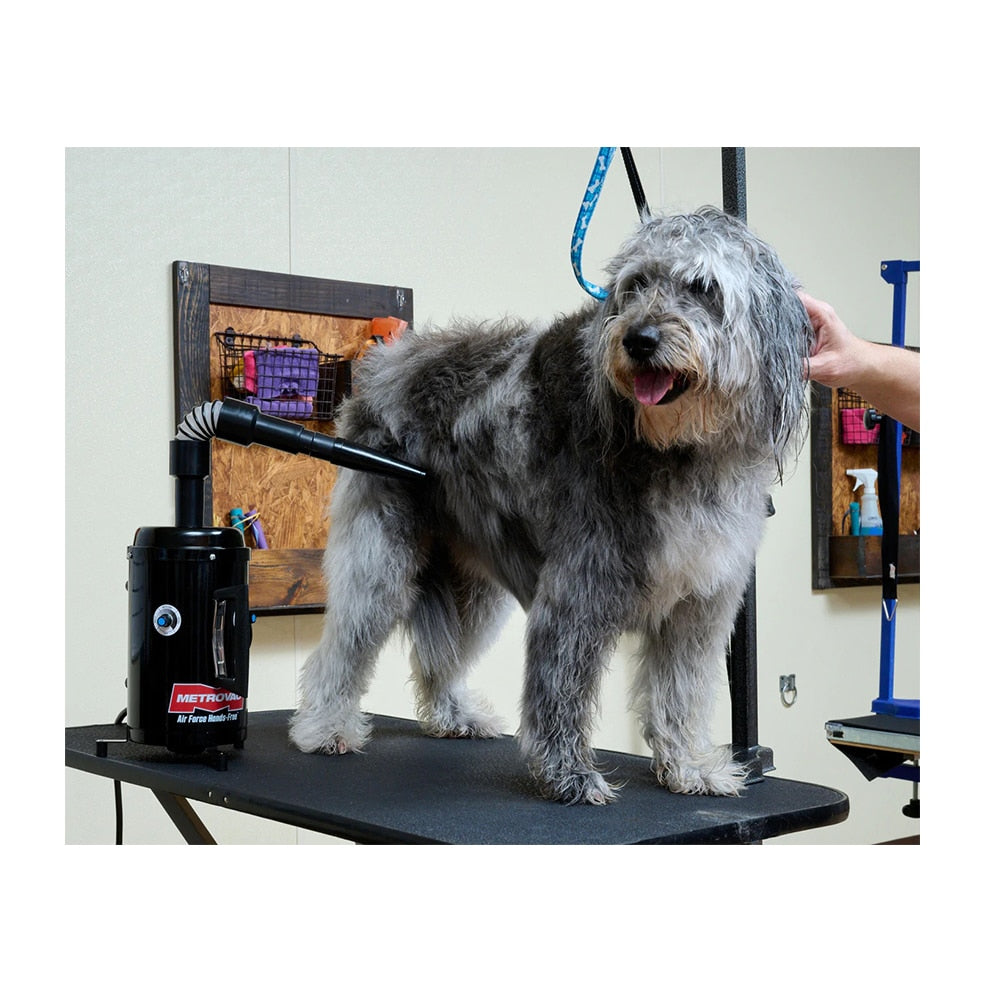 - The stay-put hose of this metrovac dryer is easy to position for drying the dogs
