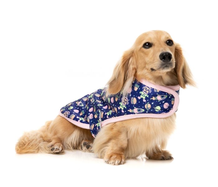 Ever had a burger that was out of this world? Find it here again with Pluto Pup and their outerspace adventures! Deck your pet out in the Pluto pup design and watch them ROCK-IT! Your dog or cat is sure to be the supaw cutest centre of attention in our colour poppin' pet bandanas. Simple and practical, even the fussiest of dogs will love wearing the wrap vest.