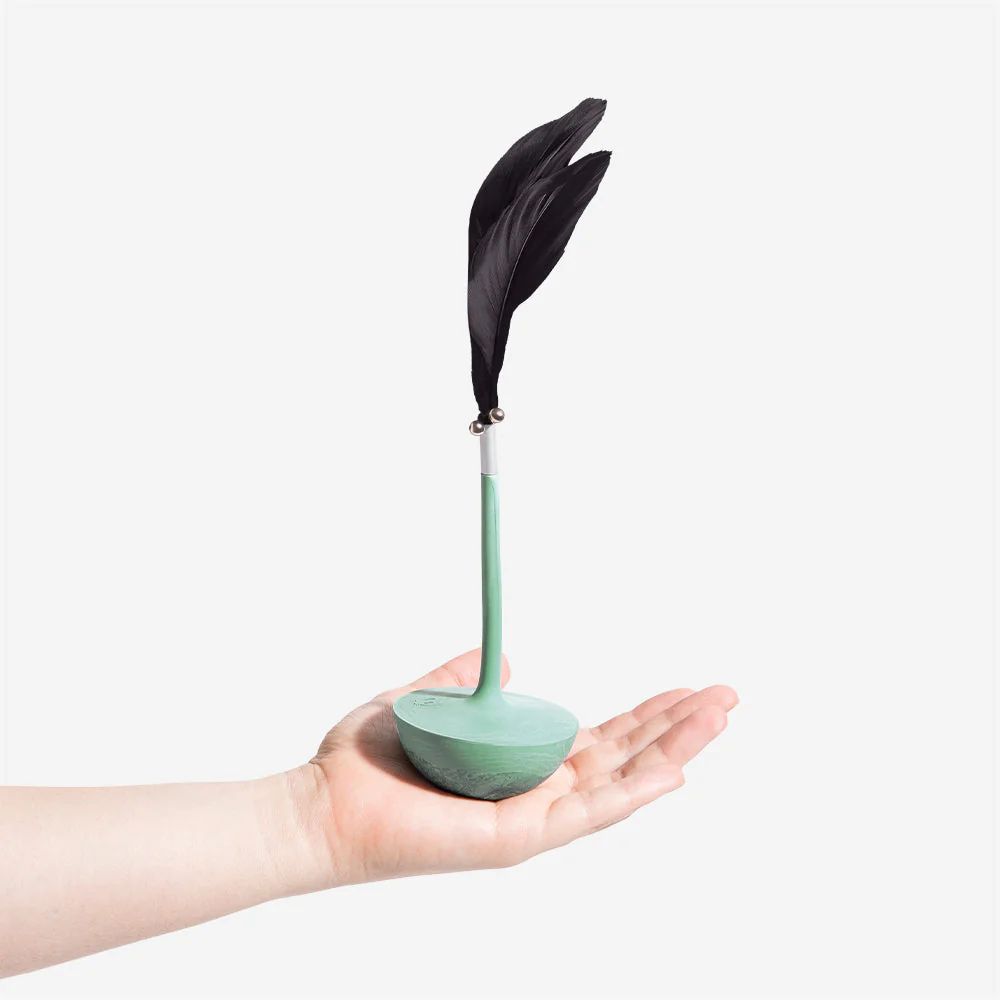 The Mint Teaser Cat Toy is designed for self-play. With a weighted base that moves back and forth, this natural rubber toy is hard for cats to resist. The removable feathers and bell make the toy more interesting.