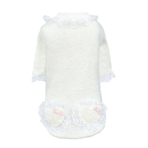 Introducing the charming Lil Lamb Dog Sweater by Hello Doggie! This exquisite piece is designed with premium cotton knit fabric and adorned with a touch of elegance. The handcrafted accessories include romantic lace details, sheer bows accented with delicate pearls, and heart-shaped pockets, all adding a touch of sophistication to this cozy sweater. Crafted with meticulous attention to detail, this sweater is not just comfortable for your furry friend, but also a stylish statement piece for any occasion. For the perfect winter outfit pair with one of our coats. Spot Clean or wash on delicate, no bleach or softener and air dry.