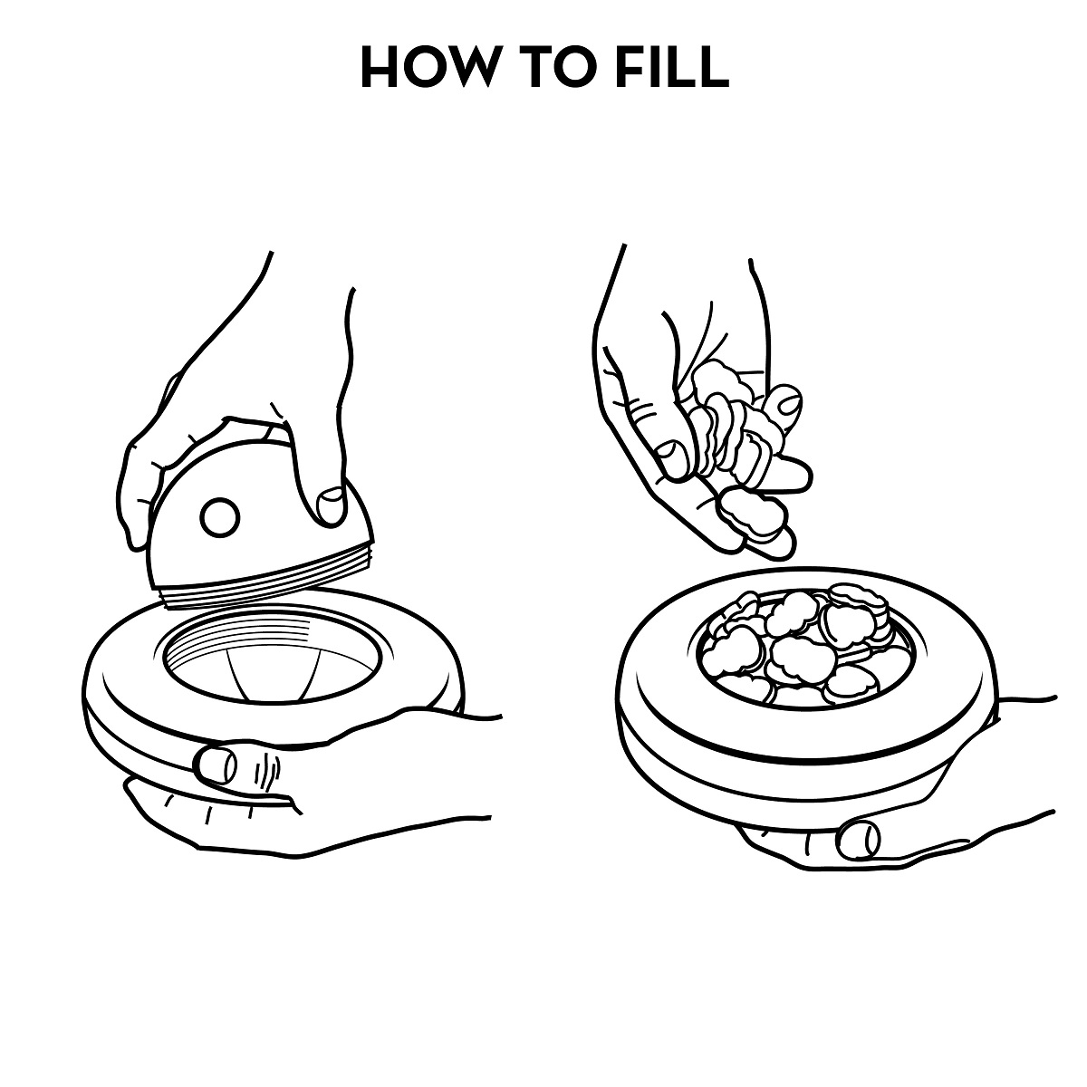 The KONG Gyro is sure to entertain with irresistible roll and flip action keeping dogs enticed and intrigued. With the center spinning orb and static outer ring, this dynamic toy encourages dogs to push, paw and roll the GYRO, delightfully dispensing tasty treat rewards along the way. Ideal for independent play, stuff with snacks or kibble for added fun and extended playtime. Available in large and small sizes.