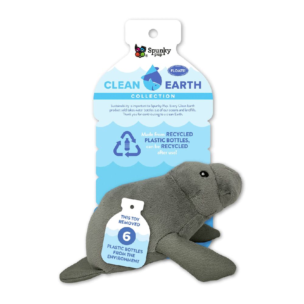 Spunky Pup's Clean Earth Collection is eco-friendly and fun! All toys in this line are made entirely from recycled PET plastic bottles that have been removed from our oceans and landfills. Each toy has a hang tag that showcases how many bottles were diverted from the environment. Plus, it not only do the plush toys have a built-in squeaker, but they also float! Best of all, it's part of an infinite loop recycling, meaning the toy can be recycled after use. Please contact your local recycling center and ask how to properly recycle your toys.