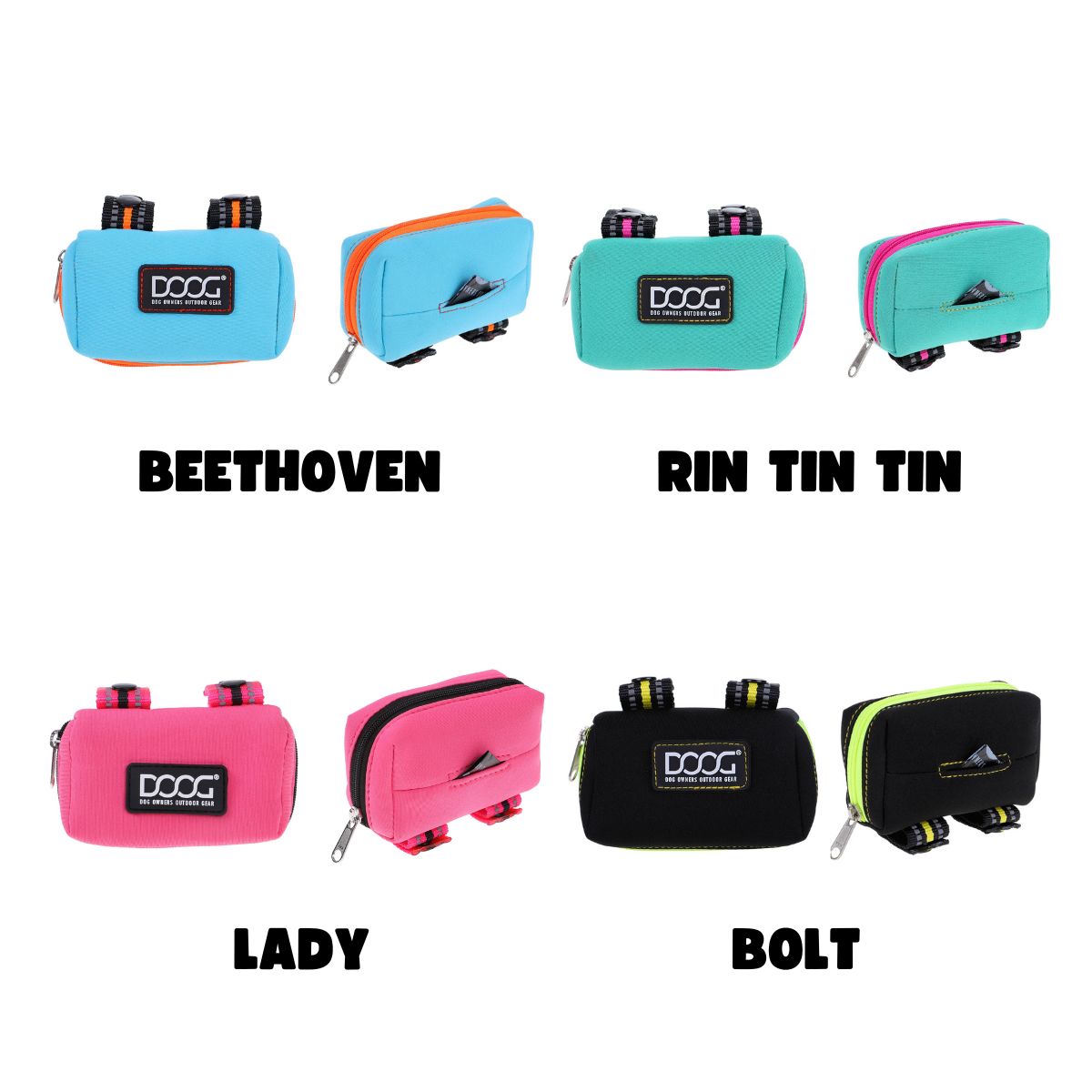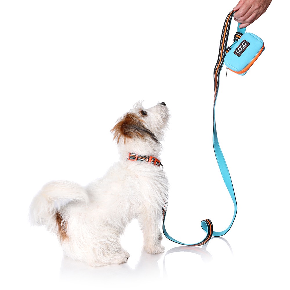 For those who don't like carrying a bag or belt on their dog walk and just want something to hold their poop bags securely the DOOG Walkie Pouch is the answer. This handy, lightweight pouch comes with 15 sample DOOG pick up bags (refills available) that pull out like tissues from a little hole at the front. The Walkie Pouch clips easily onto the handle of your leash so you never get caught out in an embarrassing moment with your dog (we've all had them). And you can match your Walkie pouch to your DOOG leash as they are all color co-ordinated.
