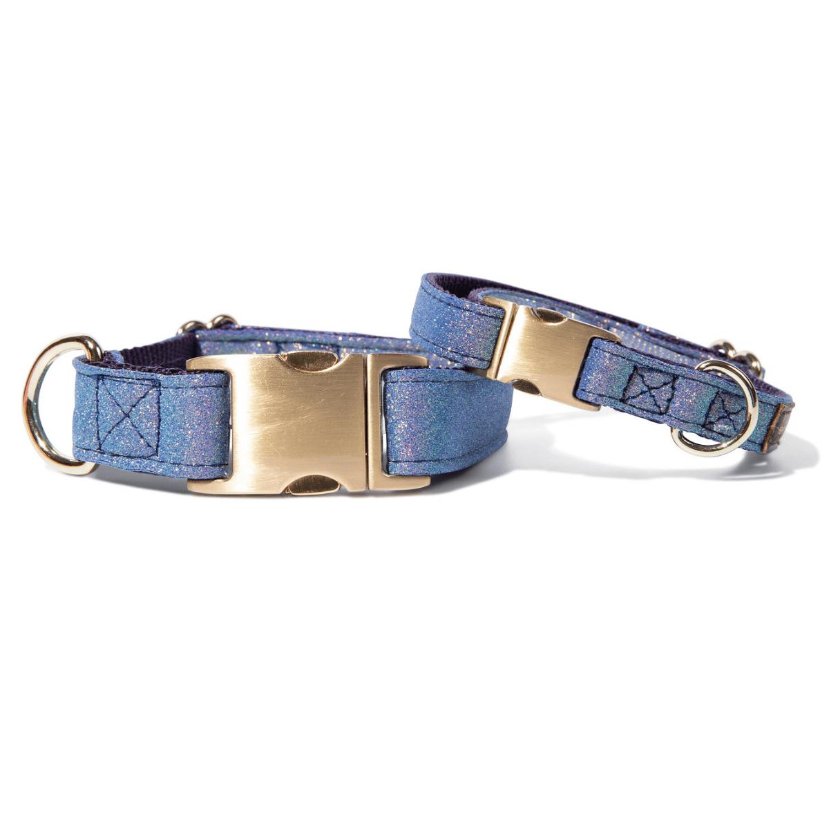 Upgrade your dog's look with a fashionable, durable collar featuring gold hardware and reinforced stitching for style and strength during adventures.