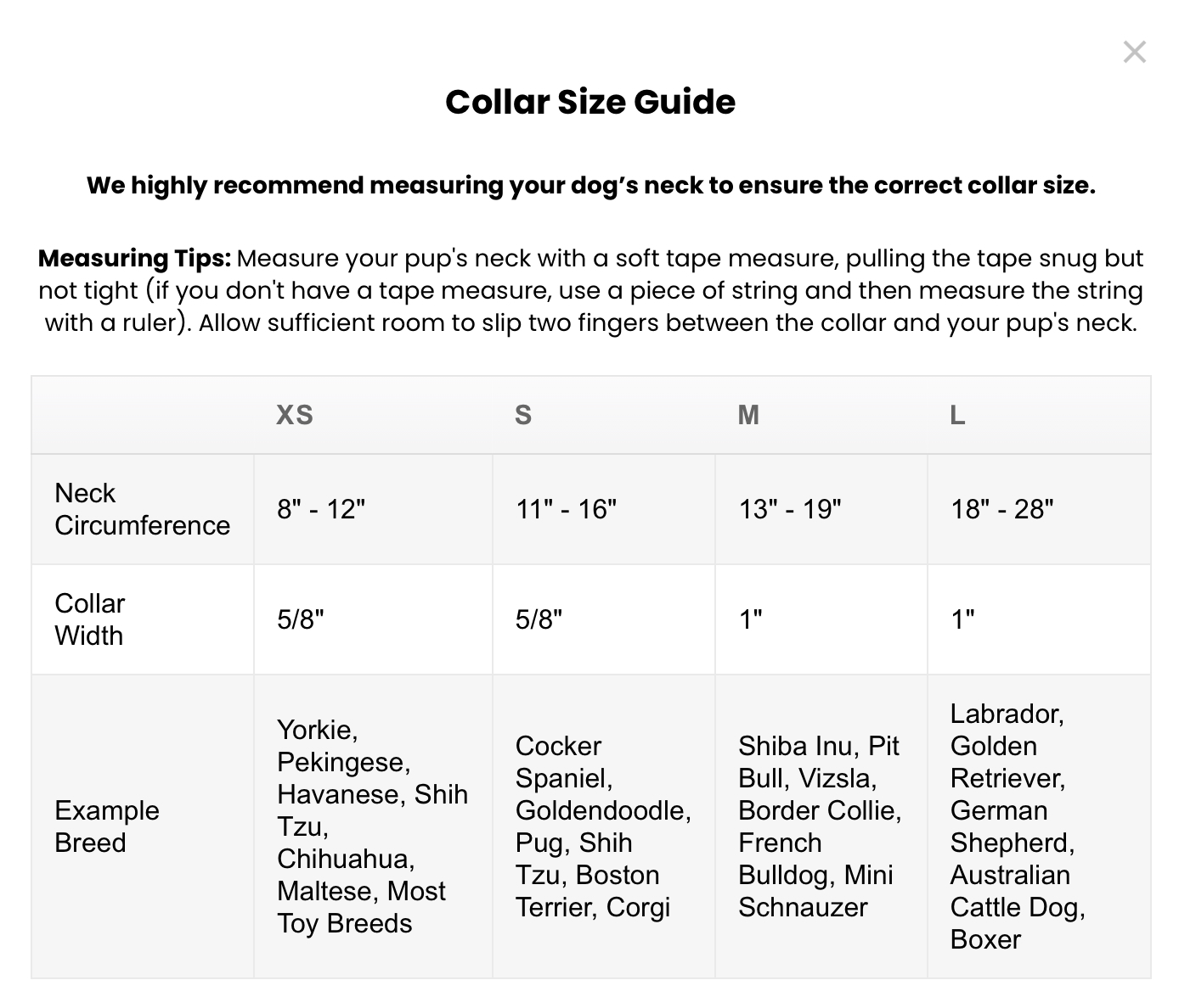 XS: 8 - 12” (5/8” wide)