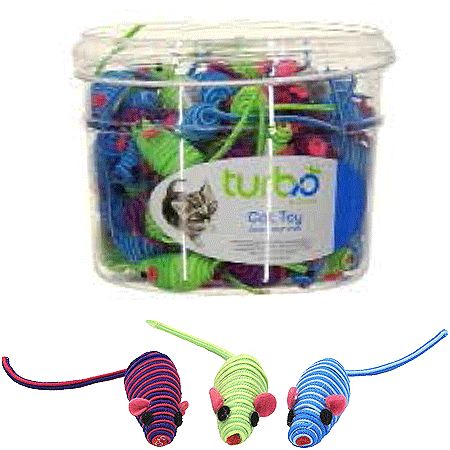 COASTALTURBO CAT TOY BINString Mice90 ct 5" Size The Turbo Bulk Cat Toy Bins offer a wide variety of toys made of materials such as feathers, sponge, plastic...