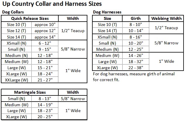 Up Country's ribbon collars and leads come in two widths. Wide = 1 inch, Narrow = 5/8 inch.