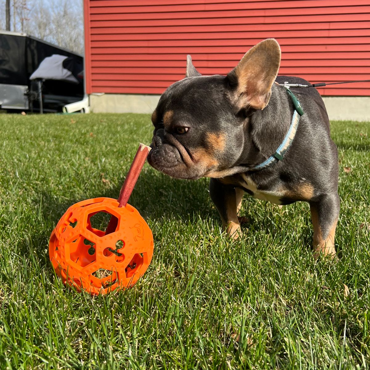 Playing fetch with your dog is the purest form of interactive play, making flying disc dog toys the greatest of all toys for dogs. With that in mind, we at Tall Tails came up with the GOAT Sport Flex-a-Ball Dog Toy, an update to our favorite toy. A natural rubber fetch toy for dogs, the GOAT Sport Flex-a-Ball allows stretchy tug and pull play while featuring lots of holes for easy grabbing and throwing for you and your pup. Ideal for dogs who love to fetch, tug, and be challenged, its treat port designs allow addition of yummy treats, jerky, and small toys for rewarding fun!