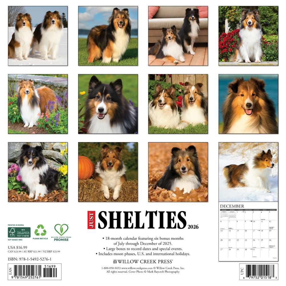 Shelties are known for their gorgeous, flowing coats and happy smiles. Twelve vivid, full color photographs celebrate all the loving, loyal and affectionate traits that make them such wonderful companions. Stay organized in the upcoming year with a Willow Creek Press 2026 12" x 12" Wall Calendar. This calendar features large grids for easy notation of dates and events, helping you stay efficient and on top of your commitments. Let this calendar guide you to a more organized, successful and fulfilled year ahead. PERFECT GIFT - Look no further for the perfect gift for any special occasion. Make someone's year extra special with one of our 2026 Wall Calendars. Our calendars are the perfect choice for your friends or family, even for those difficult to buy for PLANNING - Stay organized and inspired throughout the year. Ideal calendar for taking notes, recording dates to remember, tracking appointments and assisting in family activity organization INCREDIBLE IMAGES – Crisp, detailed full-color images every month providing Wall art for Home, Office or School LARGE GRIDS – 12” x 12” format, with large daily blocks providing ample writing room SUPERIOR QUALITY – High quality paper stock that lays flat when hanging and offers crisp, bright colors MONTHLY OVERVIEW – Plan ahead or look back with grids of the upcoming and previous months at a glance ECO FRIENDLY – Willow Creek Press is committed to eco-friendly efforts to make our products more sustainable, our 2026 12" x 12" wall calendars are printed with soy-based inks on high-quality FSC certified paper for smooth writing DATE RANGE - 2026 Wall Calendar with 6 bonus months from July-December 2025 BONUS FEATURES –US and International holidays and moon phases (CST) noted on each month for easy tracking This year can be your most successful yet, with this beautiful and brilliant wall calendar. Learn how to become a highly effective person, one month at a time!