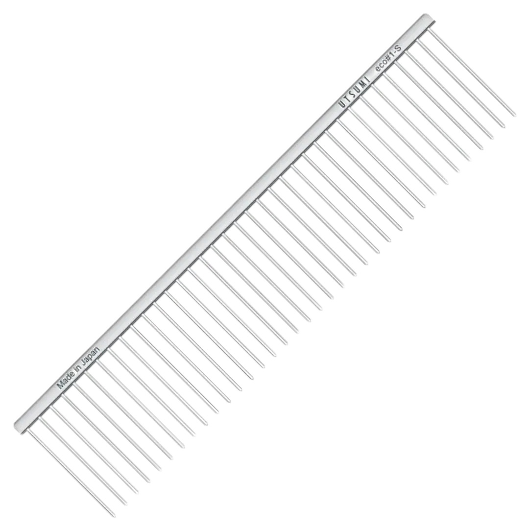 Utsumi ECO #1 S Comb, featuring a solid brass handle and high-strength steel teeth, this comb is built to tackle everything from daily grooming to demanding spray-up jobs and heavy coat maintenance with ease.