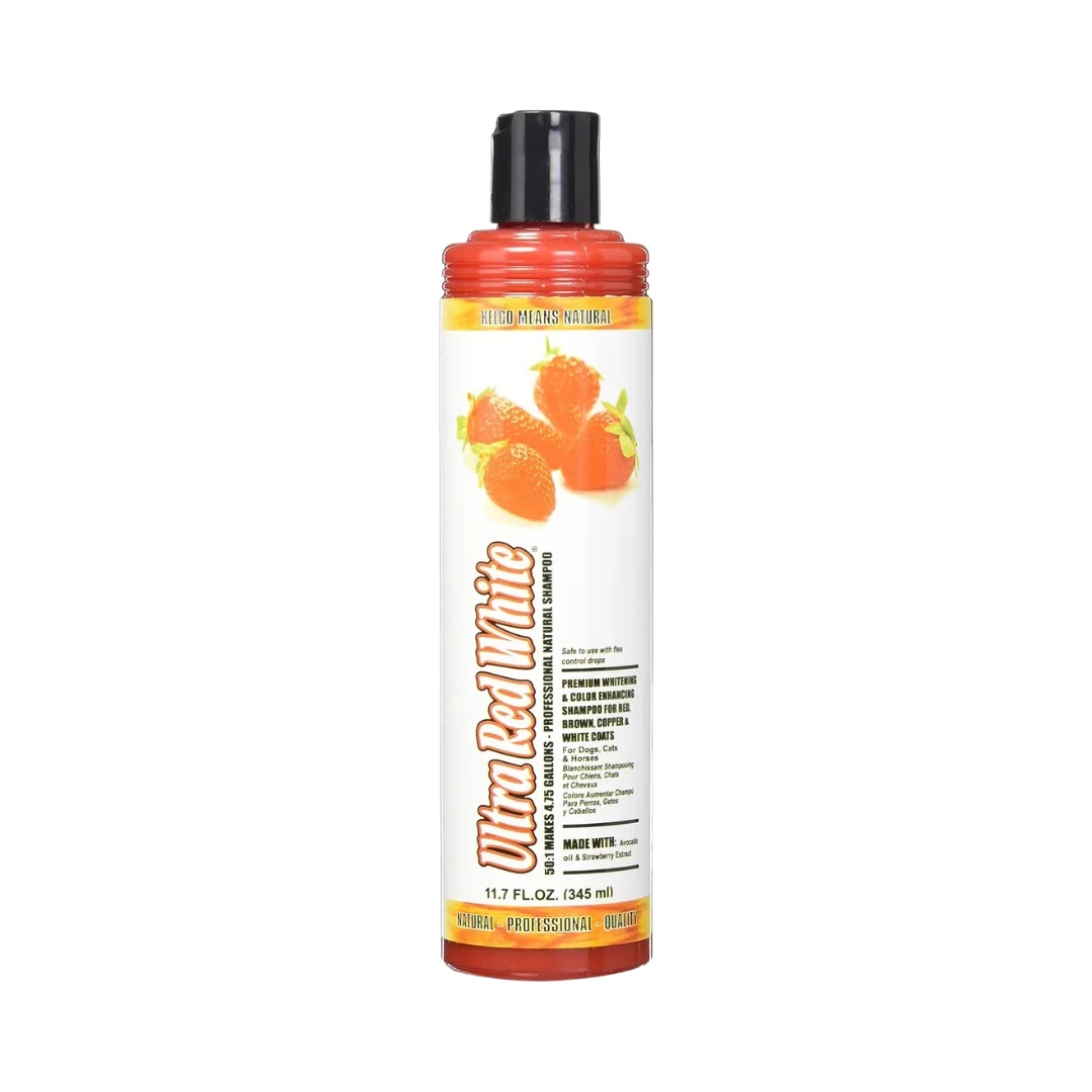 Kelco Ultra Red White 50:1 Shampoo is a highly concentrated & color-enhancing shampoo expertly formulated to highlight red tones in dark brown coats or reddish coats and odors.