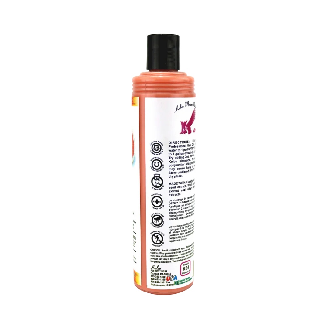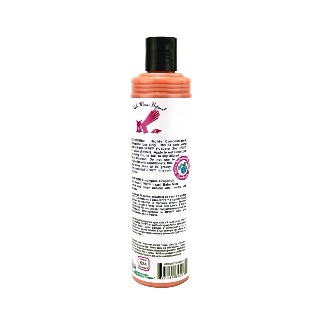 Directions for Use: Mix 1 part DP76 with 64 parts warm water (approx. 2oz per gallon). Apply to a wet, clean coat after shampooing.Do not rinse.leave it on the coat to air dry naturally. Optional: Add 2-4 oz. of DP76 to diluted Kelco shampoo for an herbal boost. Do not apply to open sores. Store undiluted product in a cool, dry place.