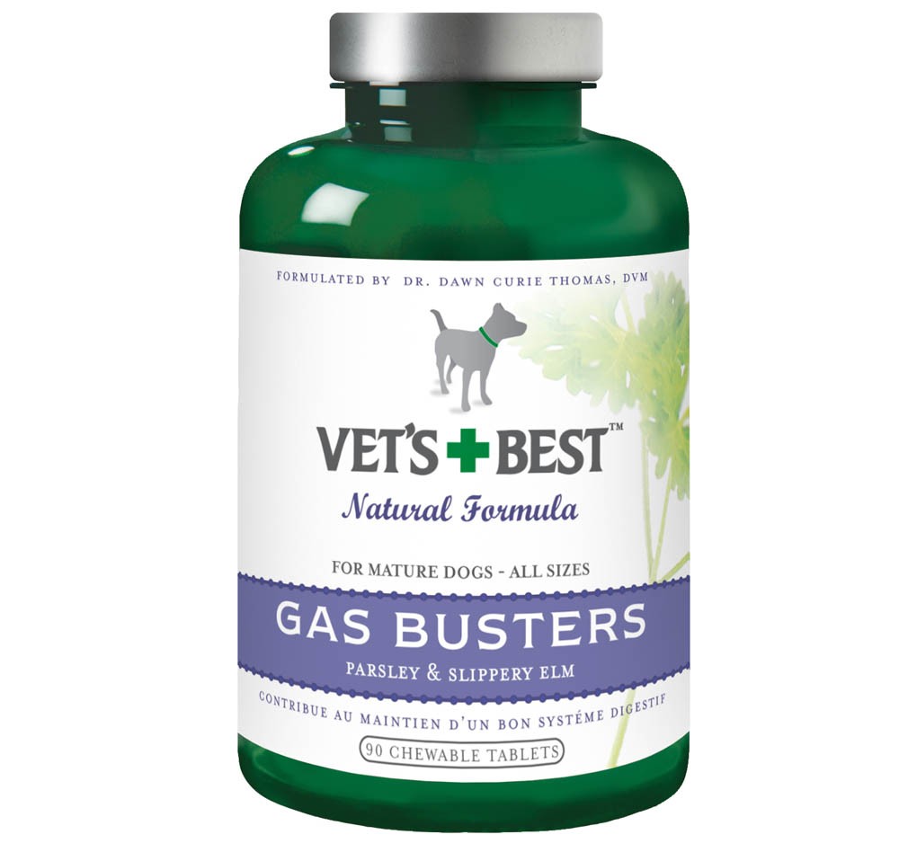 Whether your dog suffers from occasional gas, bloating, or an upset stomach, Vets Best Gas Busters Supplements for Gas Relief and Digestion Aid can help. Our veterinarian-formulated blend of key natural ingredients (including parsley, slippery elm bark, and ginger root) provides soothing relief, while enzymes and probiotics help support a healthy gut microbiome.