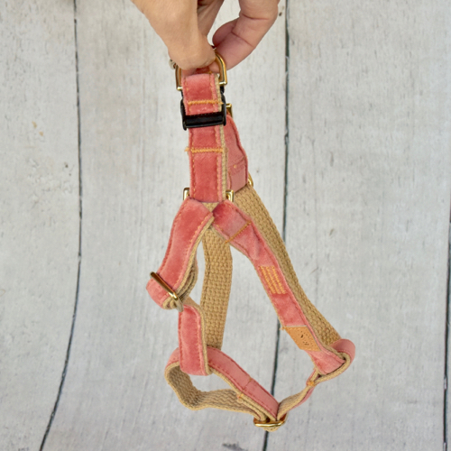 All of our accessories are made on lightweight soft cotton webbing. We use different fabrications, sourced from all over the world, accompanied by solid brass fittings and an adjustable collar. All of our products are handmade and assembled in San Francisco, California.