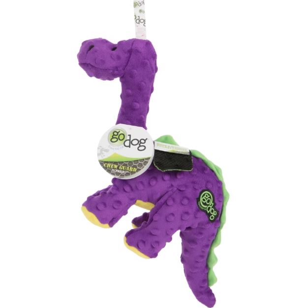 goDog Dinos are a blast from the past, made with bubble plush and lined with Chew Guard, these toys stand up to tough play. Minimal stuffing gives these toys a fun floppy feel that dogs love! goDog plush dog toys are designed to be stronger and last longer. Made durable with Chew Guard Technology, a special manufacturing process that adds a durable liner and reinforced seams to soft plush for longer-lasting play