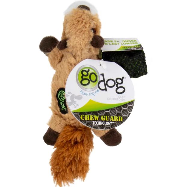 goDog Flatz dog toys are floppy and under-stuffed with realistic, high-quality plush, bringing the exciting outdoors indoors for your loveable wild pup. Featuring a puncture-proof integrated squeaker, your dog can joyfully bite for a satisfying play session. Made more durable with Chew Guard Technology, a unique manufacturing process that adds a durable liner and reinforced seams to soft plush for longer-lasting play, GUARANTEED! Dogs are tough, but Chew Guard Technology is tougher. goDog Flatz plush dog toys are great for entertaining and occupying your pups and for a bonding game of tug-o-war. Available in Mini, and Large, so dogs of all sizes can join in on the fun.