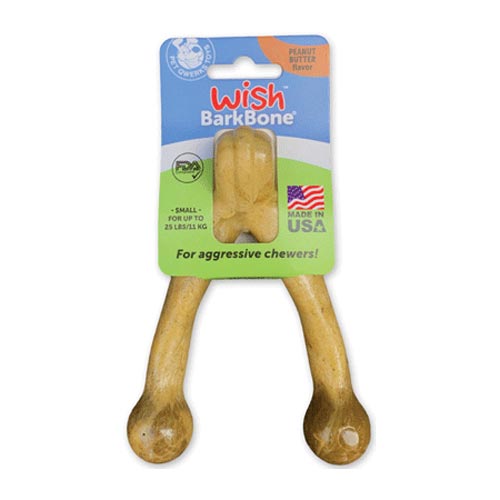 The Wish for aggressive chewers! Contains no peanuts and is allergen free. The Wish BarkBone Peanut Butter dog chews are molded with FDA compliant Nylon and delicious Peanut Butter Flavor. Contains no peanuts and is allergen free. All of Pet Qwerks dog chews are manufactured in the US. None of our chew ingredients are sourced from China. Non-toxic, non-allergenic and safe for your dog! Pet Qwerks Wish BarkBone Dog Chews has no artificial preservatives.