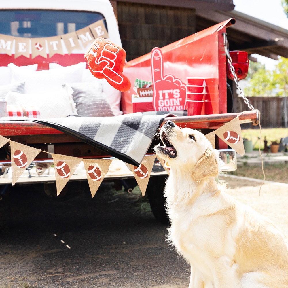 Time for sports! Our “#1 Fan” plush toy is perfect for playtime, anytime. Made with a super loud squeaker and stuffed with fluff, your pup will be ready to cheer on their favorite team. Great for all dog sizes and not intended for aggressive chewers.
