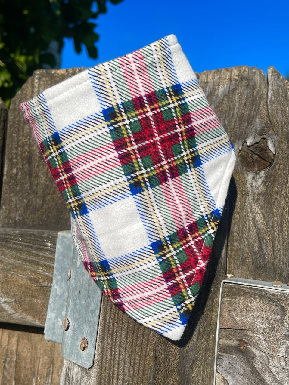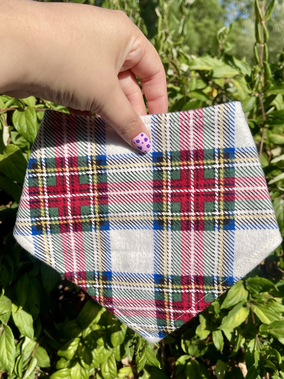 Après Bark – Holiday Dog Bandana | Red, Green & Gold Plaid on White | Organic Cotton | Handmade in LA