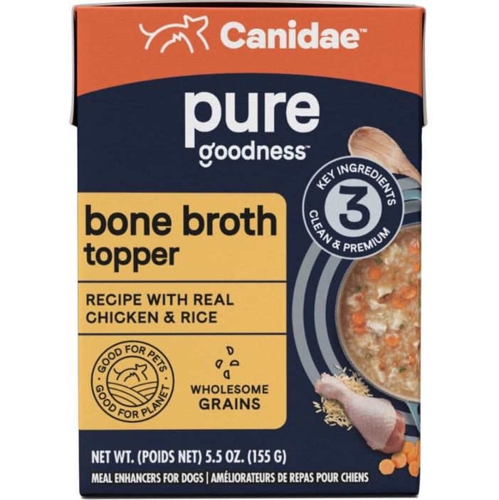 Nourish your dog with Canidae's Pure Chicken Bone Broth Toppers cooked with real bone broth and wholesome grains. Slow cooked in the USA using responsibly-sourced...