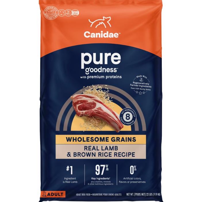 Canidae PURE with Grains features clean recipes and premium proteins, crafted with your dog's health and well-being in mind. High in animal protein, the first ingredient in this limited ingredient dog food recipe is always real meat, fish or pultry, paired with wholesome grains.