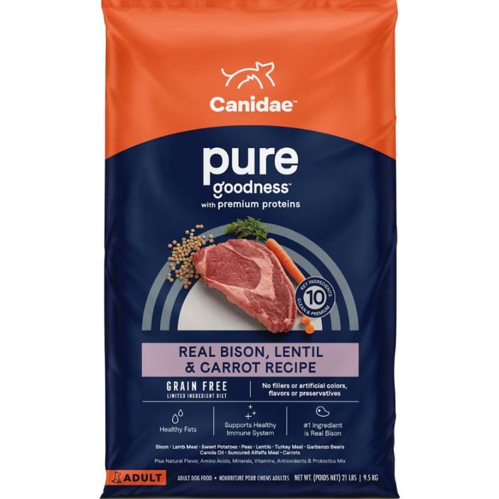 CANIDAE PURE Goodness Grain-Free LID Dry Dog Food Bison, Lentil & Carrot 21lb