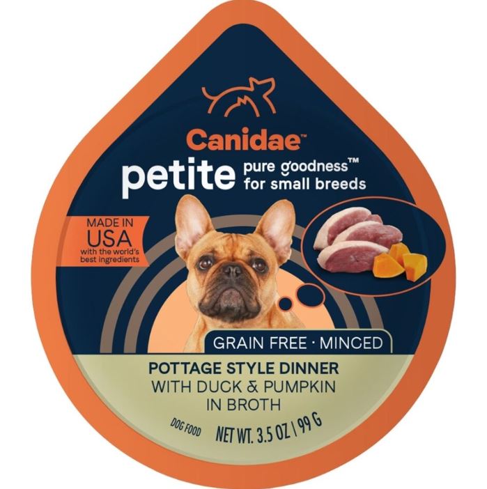 Canidae PURE Petite Grain Free wet formulas use simple, limited ingredient recipes for sensitive small dogs. Your pampered pooch will enjoy choosing from a menu of deliciously prepared dishes that include single-serving cups with moist pâtés, minced meats, and tender morsels-- as well as cans featuring stews, shreds, and chunks in tasty gravy. And you'll enjoy indulging your petite companion knowing that each portion is filled with great tasting, premium nutrition.