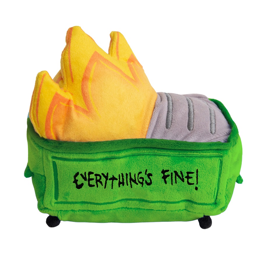 Meet the ultimate plush toy for dogs with a flair for drama. This hilarious and soft toy is shaped like a green dumpster ablaze with plush flames, complete with embroidered text that says what we’re all thinking: “Everything’s Fine!”
