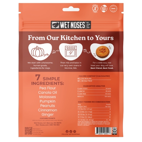 Warm, cozy, and full of crunch. Wet Noses Crunchy Baked Pumpkin & Cinnamon Treats combine real pumpkin with a touch of cinnamon for a comforting flavor dogs love. Oven baked with simple, human grade ingredients, these crunchy treats turn everyday treat time into a moment worth celebrating.