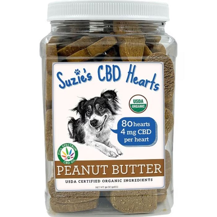 Suzie's CBD Hearts For Dogs Bulk Jar Peanut Butter 80 Ct-32oz.