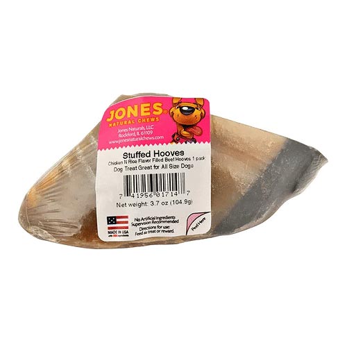This will take your dog's favorite cow hoof treat to a whole new level. This treat is a delicious beef hoof with a bonus of yummy chicken and rice stuffing! 100% made and grown in the USA. No artificial ingredients. Ingredients: beef hoof, chicken, cane sugar, molasses, water, glycerin, rye flour, rice flour, natural mixed tocopherols, buffered white distilled vinegar, rosemary extract.