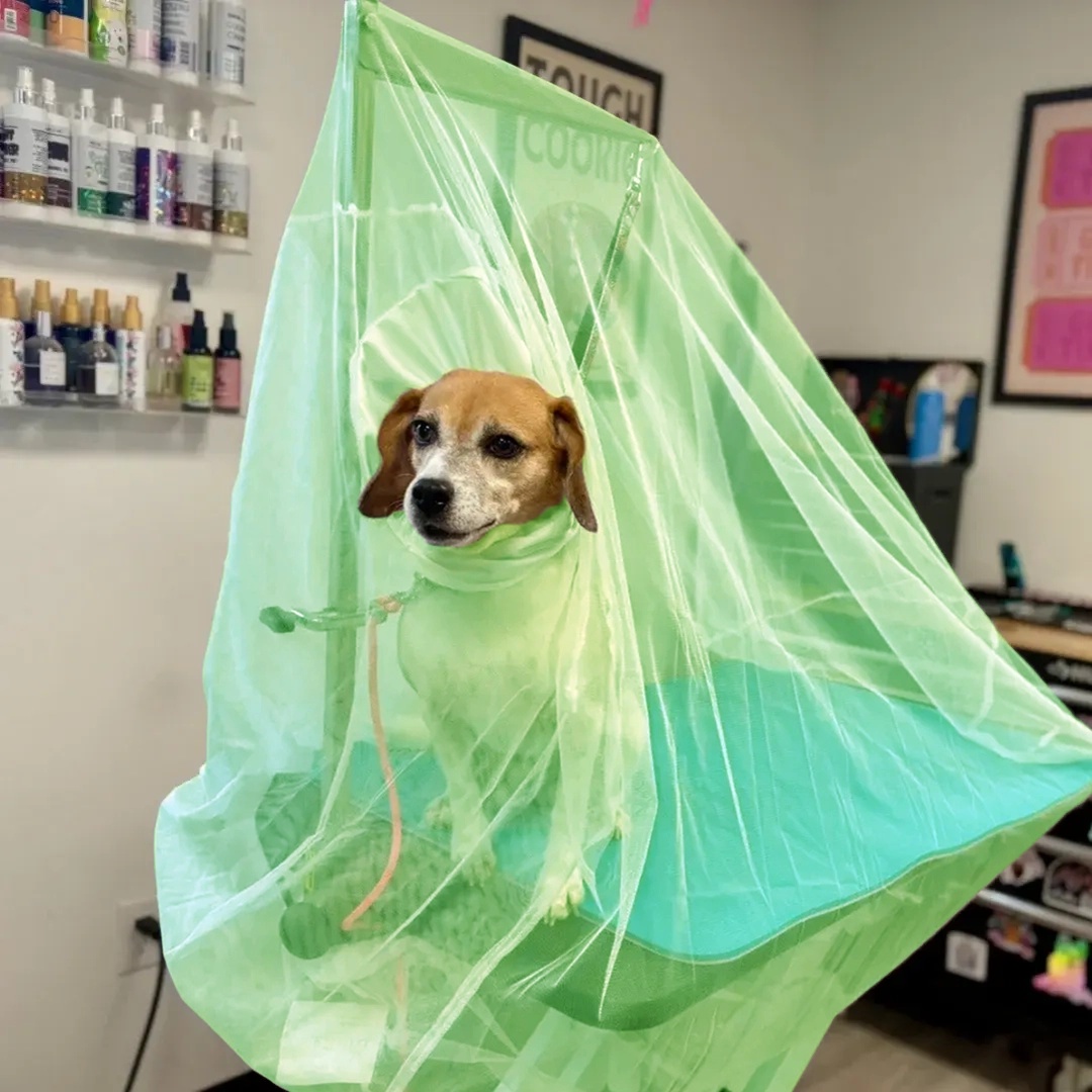 Big Hair Net Flying Fur Catcher Green Extra Large is a game-changing deshedding tool designed for professional groomers.