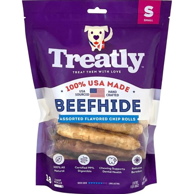 Treatly 100% USA Beefhide Chip Rolls Chicken/Beef 5in. -18 Pk