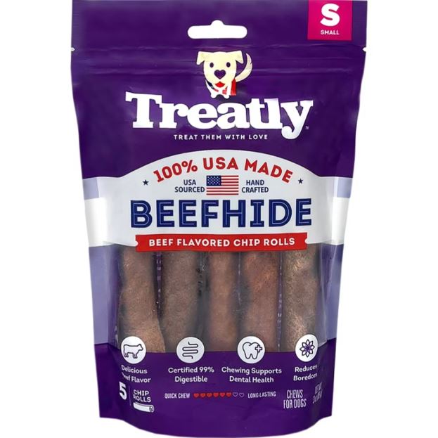 Treatly 100% USA Beefhide Chip Rolls Beef 5in. -5 Pk