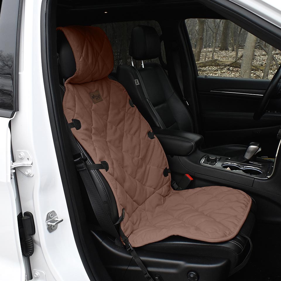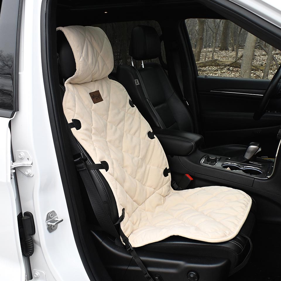 Upgrade your pup's car rides with this seat protector. It is made with a cozy microfiber fabric with a sewn in waterproof barrier and non-slip back. Equipped with an adjustable quick release buckle, it easily attaches to any car headrest. Keep your car clean from pet hair and muddy paws while giving your furry companion a comfortable ride.