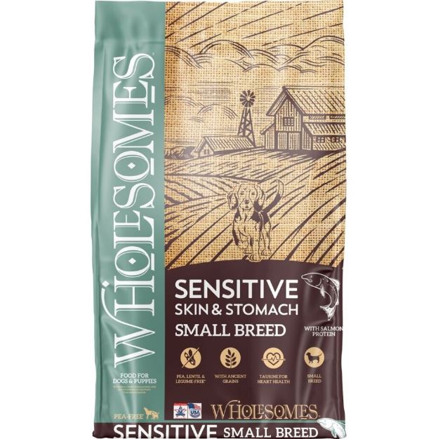 • Will support any puppy or adult dog with sensitive skin or stomach • The small kibble size is perfect for small breed dogs. • Easily digestible protein, such as salmon, and grains like brown rice, oatmeal and barley (great sources of fiber) help aid good digestion. • Free from peas, lentils, and legumes and enriched with Taurine to help support your dogs heart and overall health • Nutritionally balanced Omega-6 and Omega-3 fatty acids to help promote healthy skin and hair coat.